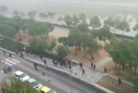 Op een steenworp afstand van het Vicente Calderon stadion gooiden groepen die in de Spaanse pers als hooligans van de clubs worden omschreven, met grote voorwerpen naar elkaar. Enkele relschoppers zwaaiden ook met langwerpige metalen voorwerpen.