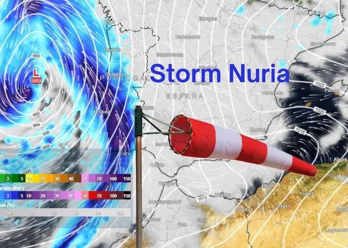 Woensdag staat in het teken van ‘storm Nuria’, de eerste naam die mogelijk gegeven wordt aan een krachtige nieuwe depressie vanuit de Atlantische Oceaan. Deze storm zal vooral Galicië, Extremadura en het westen van Andalusië aandoen. Daar gelegen zones kunnen meer dan 40 liter regen per vierkante meter verwachten.
