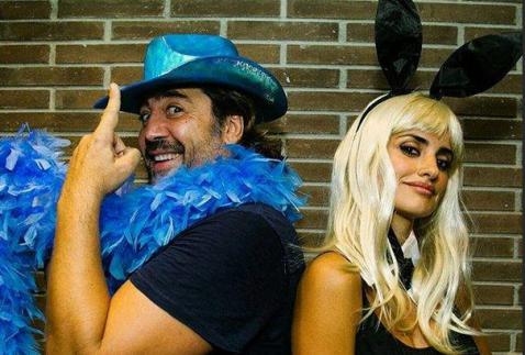 Hier verscheen later ook een foto van het acteurskoppel. Penélope was verkleed als Bunny met een hoogblonde pruik en konijnenoren en Bardem droeg een glitterhoedje en een turkooizen stola van veren. Het stel klom op een gegeven moment op het podium om daar uitgelaten mee te dansen met de bendeleden. Penélope Cruz kent leadzanger Bono goed van diverse goede doelen waar ze zich allebei voor inzetten.