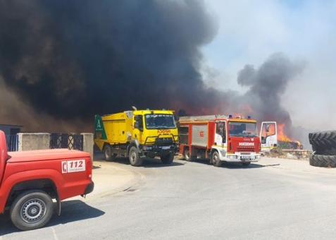 Het vuur kwam tot op tien meter afstand van de industriële gebouwen op het terrein, waardoor de brandweereenheden met krachtige waterstralen moesten optreden om te voorkomen dat de stralingswarmte en vonken die door de rookkolom werden gegenereerd de omliggende loodsen zouden bereiken. “Enkele voorwerpen zijn verbrand maar snel geblust”, legt Marfil uit.