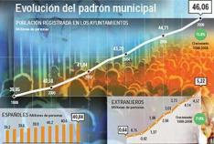 Het aantal Spanjaarden steeg met 62.944 en het aantal buitenlanders daalde met 40.447. Per saldo groeide de bevolking in Spanje in 2011 dus met 22.497 personen.