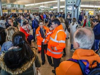 De drukte, het slechte weer en een staking van het grondpersoneel van Iberia leidden zondag tot chaotische taferelen op vliegveld El Prat.