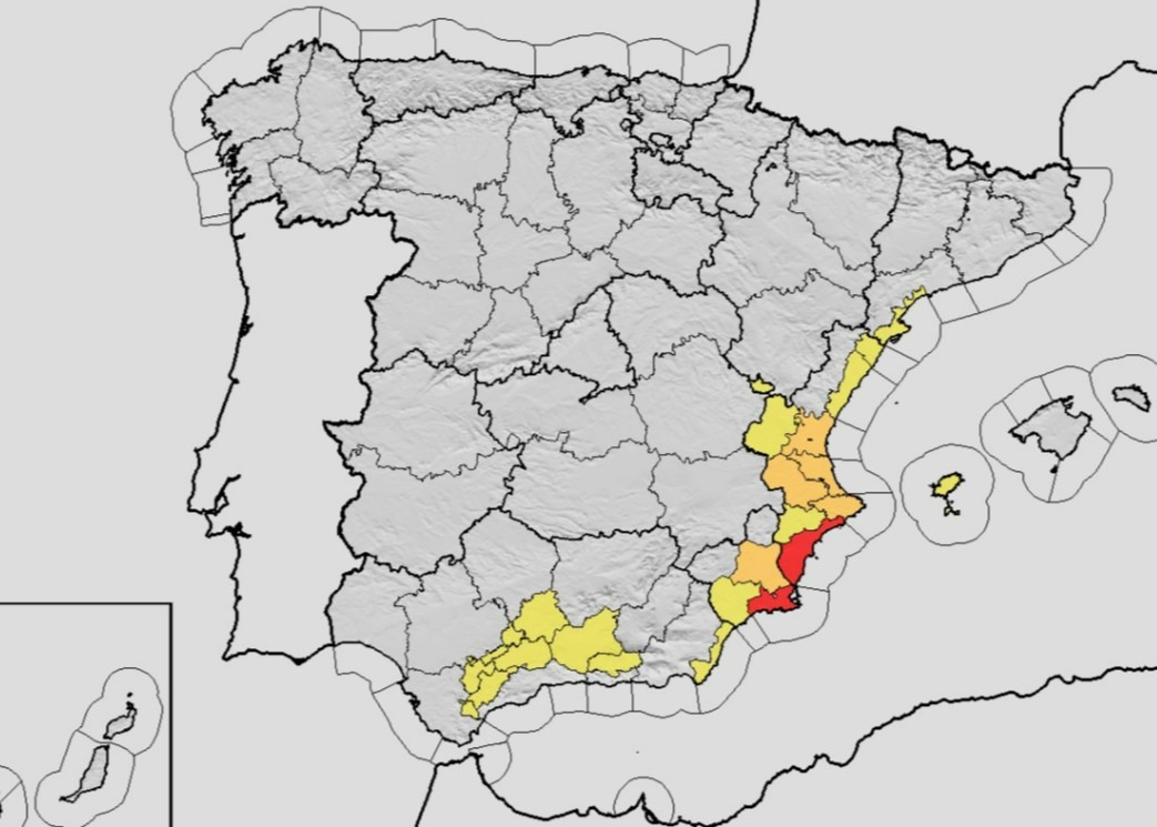 Ook in andere delen van Spanje is voorzichtigheid geboden: een code geel (risico) is van kracht in onder meer Almería, Ibiza, Cádiz, Córdoba, Granada, Málaga, Sevilla en Tarragona.