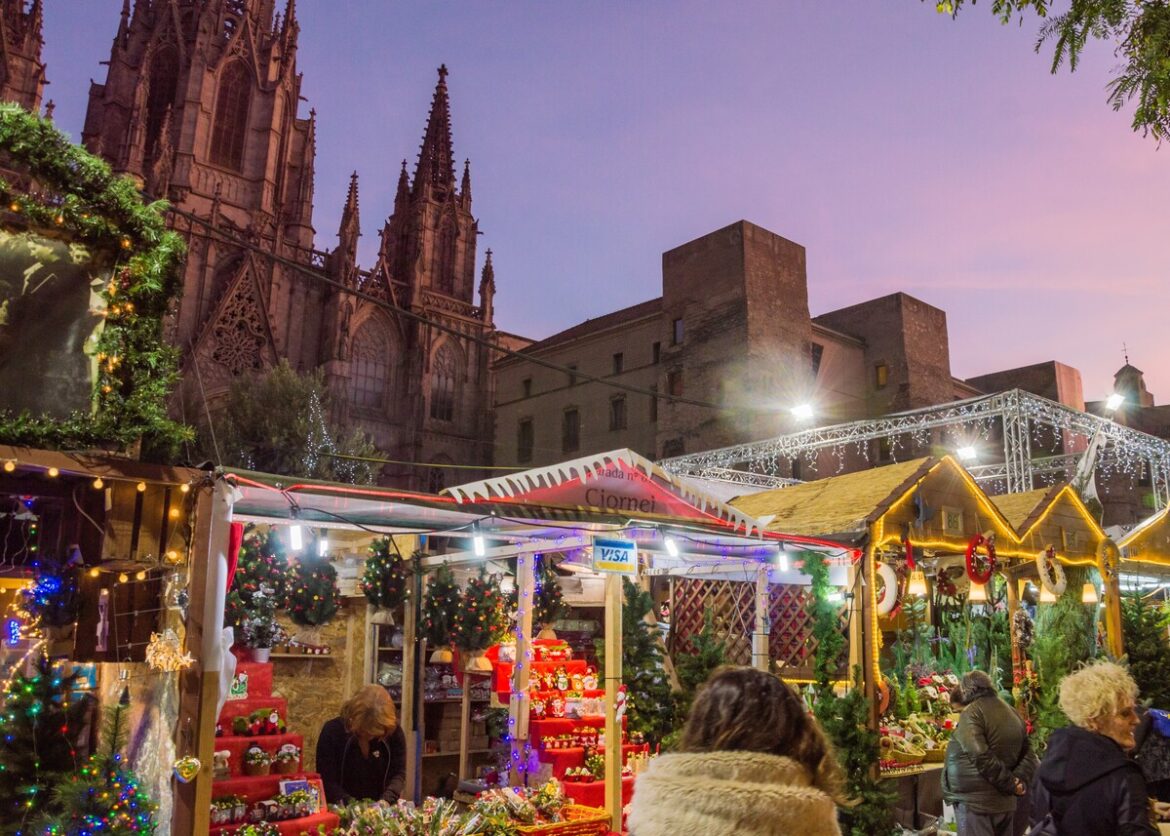 De oudste kerstmarkt van Barcelona, Fira de Santa Llúcia, bestaat al sinds 1786 en ontvouwt zich op Plaça Nova tegen de gotische kathedraal. Met meer dan 200 kraampjes toont deze markt alles, van maretak en kerststallen tot unieke Catalaanse kerstversieringen. Duik in de lokale cultuur met de traditionele beeldjes en het vermakelijke Tió de Nadal-blokken.