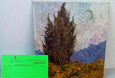 Het doek ‘Cipres, lucht en platteland’ werd gevonden in de kluis van iemand met een belastingschuld, zo schrijft El Mundo. Het verdween in 1974 uit het universitaire instituut voor kunstgeschiedenis van Wenen.