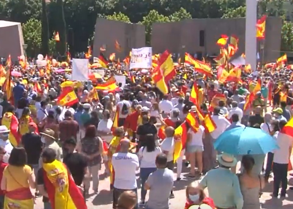 Op zaterdag 10 mei stroomde duizenden betogers voor een demonstratie naar de Plaza de Colón in Madrid om het aftreden van premier Pedro Sánchez te eisen. De massale bijeenkomst werd georganiseerd door het platform Por la España Constitucional, een coalitie van 129 burgerorganisaties. Ondersteuning kwam van prominente oppositiepartijen zoals Partido Popular (PP), Vox en vertegenwoordigers van Ciudadanos.