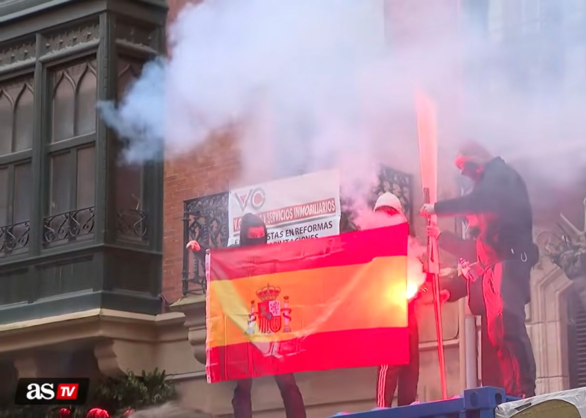 Tijdens de mars klommen vier gemaskerde jongeren op bouwketen. Ze staken een fakkel aan en verbrandden een Spaanse vlag. De vlag vatte direct vlam. Veel demonstranten reageerden met applaus.