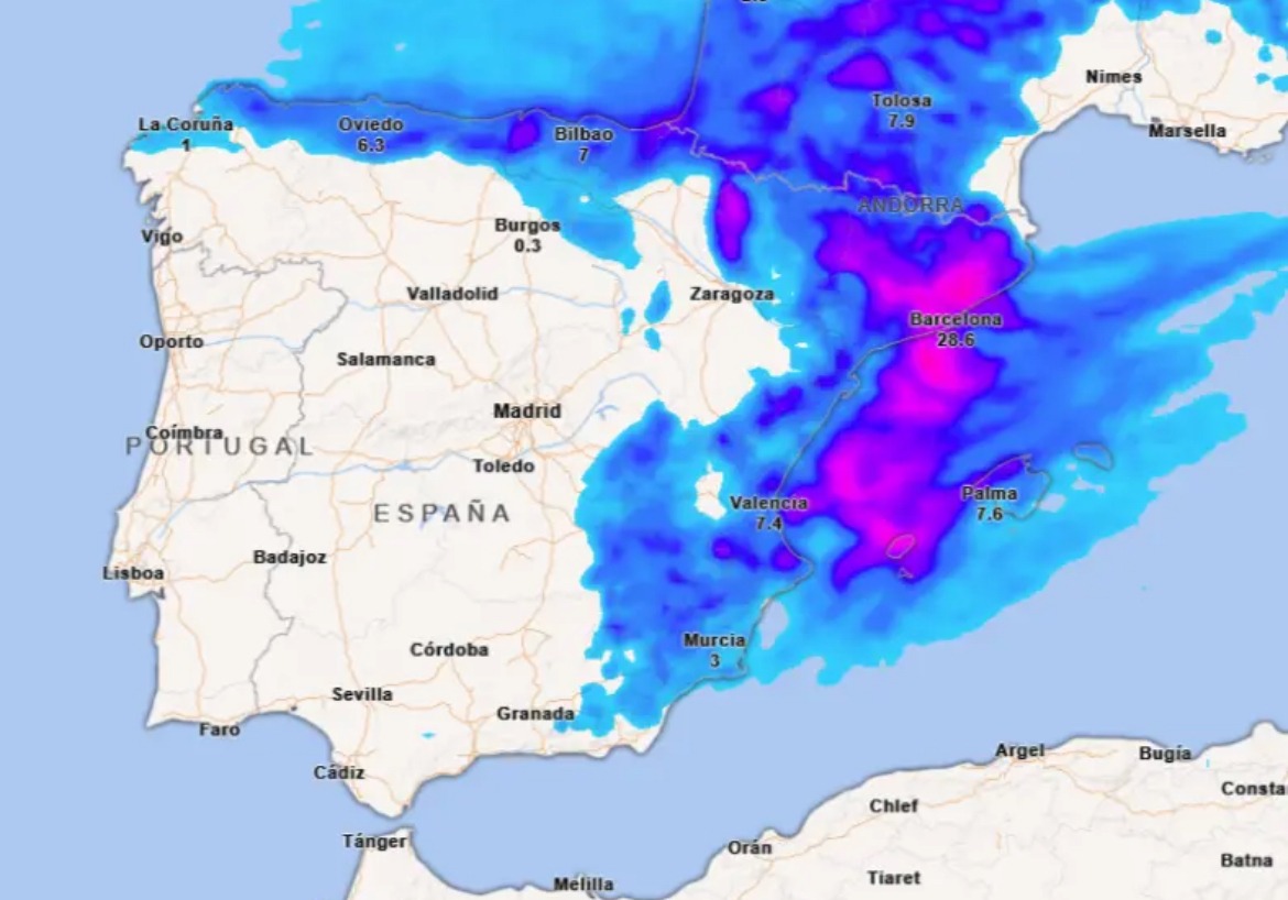 Aemet heeft voor donderdag een weeralarm uitgegeven voor 16 provincies. Barcelona, Tarragona, Cuenca, Albacete, Ibiza en Formentera kregen een oranje waarschuwing vanwege regen, storm en hoge golven.