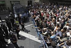 De politie heeft het Puerta del Sol plein hermetisch afgesloten om problemen zoals enkele maanden geleden toen op dit plein duizenden mensen zich verzamelden en honderden hun tenten opsloegen, te voorkomen.