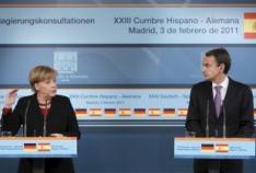 ‘Spanje heeft zijn huiswerk goed gedaan en is op de goede weg’, zo zei zij tijdens de persconferentie in het regeringspaleis La Moncloa te Madrid gedurende het 23e officiële staatsbezoek aan Spanje. Volgens Merkel zijn alle hervormingsmaatregelen die Spanje de laatste maanden heeft doorgevoerd erg ‘postief en geruststellend’ voor de internationale markten.
