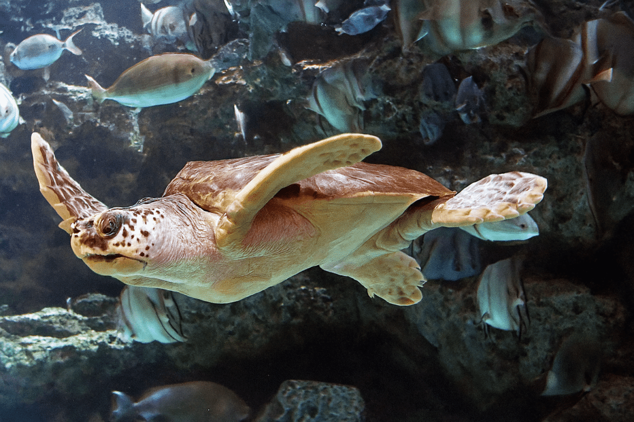 De onechte karetschildpad leeft in warme zeeën. Ze kunnen tot 200 kilo wegen en een schild van ruim een meter hebben. Vrouwtjes keren pas na 15 tot 30 jaar terug naar het strand om eieren te leggen.