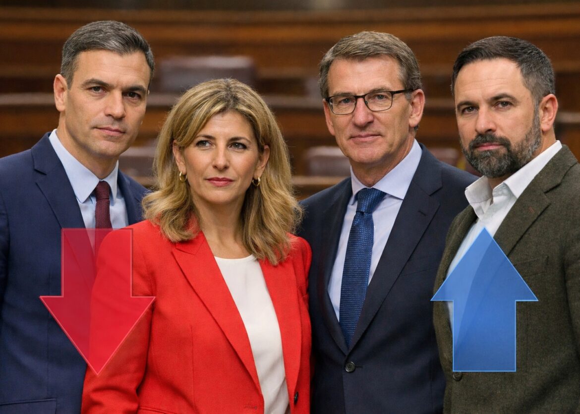Dit is één Spaanse peiling. Een eerdere CIS-peiling (januari 2026) schetste juist een heel ander plaatje: daarin zou de PSOE met 31,7% overtuigend winnen en 8,7 procentpunt voor liggen op de PP (23,0%). Vox stond toen op 17,7% en de groei leek te stagneren. Links bleef in die meting kleiner: Sumar 7,2% en Podemos 3,5% (beide licht lager dan in december).