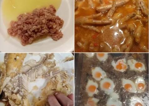 Foto’s, verkregen door Infobae España, tonen onsmakelijke maaltijden zoals kippenpootbouillon, eieren in zwarte saus en vis met graten voor mensen die moeite hebben met slikken. Volgens Huertas hebben de maaltijden “een laag proteïnegehalte en zijn slecht bereid… Ze krijgen niet genoeg te eten vanwege een gebrek aan personeel en dit wordt gecompenseerd met proteïne shakes.”