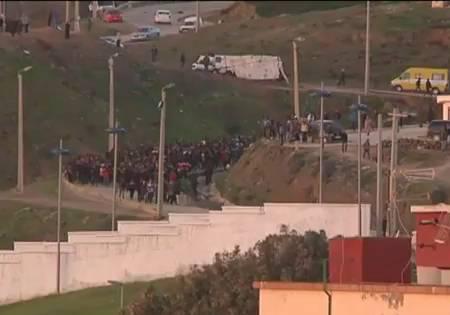 Bij de beide grensposten verzamelen zich dagelijks honderden Afrikanen die op hun kans wachten om met grote groepen tegelijk de hekken te bestormen. Om ze tegen te houden treedt de Guardia Civil politie hard op en krijgt ze hulp van de Marokkaanse politie.