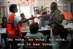 Als de invalide vrouw, nadat ze door een hulpverlener het stemlokaal is binnengetild, haar envelop in de stembus wil deponeren, begint Huerta tot grote verbazing van alle aanwezigen heel hard te roepen: ‘No vota, no vota, he dicho que no vota, que lo has tocado’ (niet stemmen, niet stemmen, ik heb gezegd niet stemmen, je hebt het aangeraakt’).