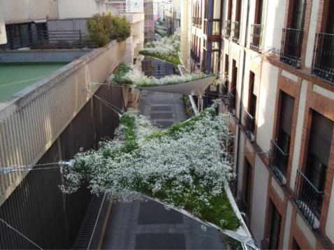 Green Shades zijn schaduwdoeken gemaakt van levende planten. Na een gedetailleerde studie van de stadsgevels, worden er speciale ankerpunten ontworpen. Deze zorgen ervoor dat de doeken strak gespannen kunnen worden en tegelijkertijd voldoen aan alle bouwvoorschriften.