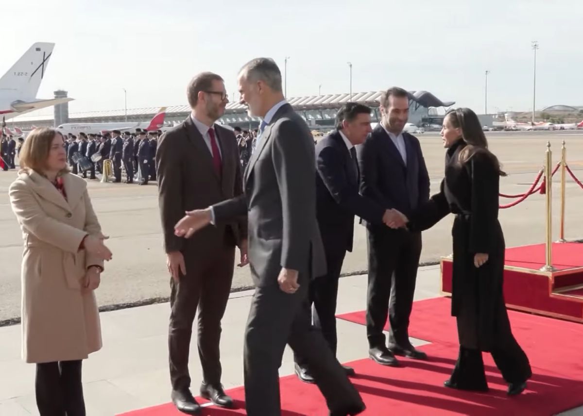 Bij hun vertrek uit Madrid verschenen Felipe VI en Letizia in een ingetogen winteroutfit. De koningin droeg een zwarte mantel met ceintuur en een wijde pantalon. Een sobere, maar krachtige uitstraling die past bij de diplomatieke context.