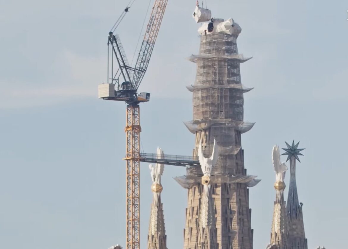 Het iconische silhouet van Barcelona verandert zichtbaar nu de Sagrada Familia haar hoogste toren afrondt. De vier horizontale armen van het grote kruis op de toren van Jezus zijn inmiddels geplaatst. En dat was geen sinecure: ze zijn elk vier meter lang en wegen 12,8 ton per stuk. Deze enorme objecten moesten op 135 meter hoogte worden gemonteerd, met extreme precisie, gezien de geometrie en symmetrie van het ontwerp. De krant El País bracht het hier mooi in beeld hoe die montage er in de praktijk uitzag.