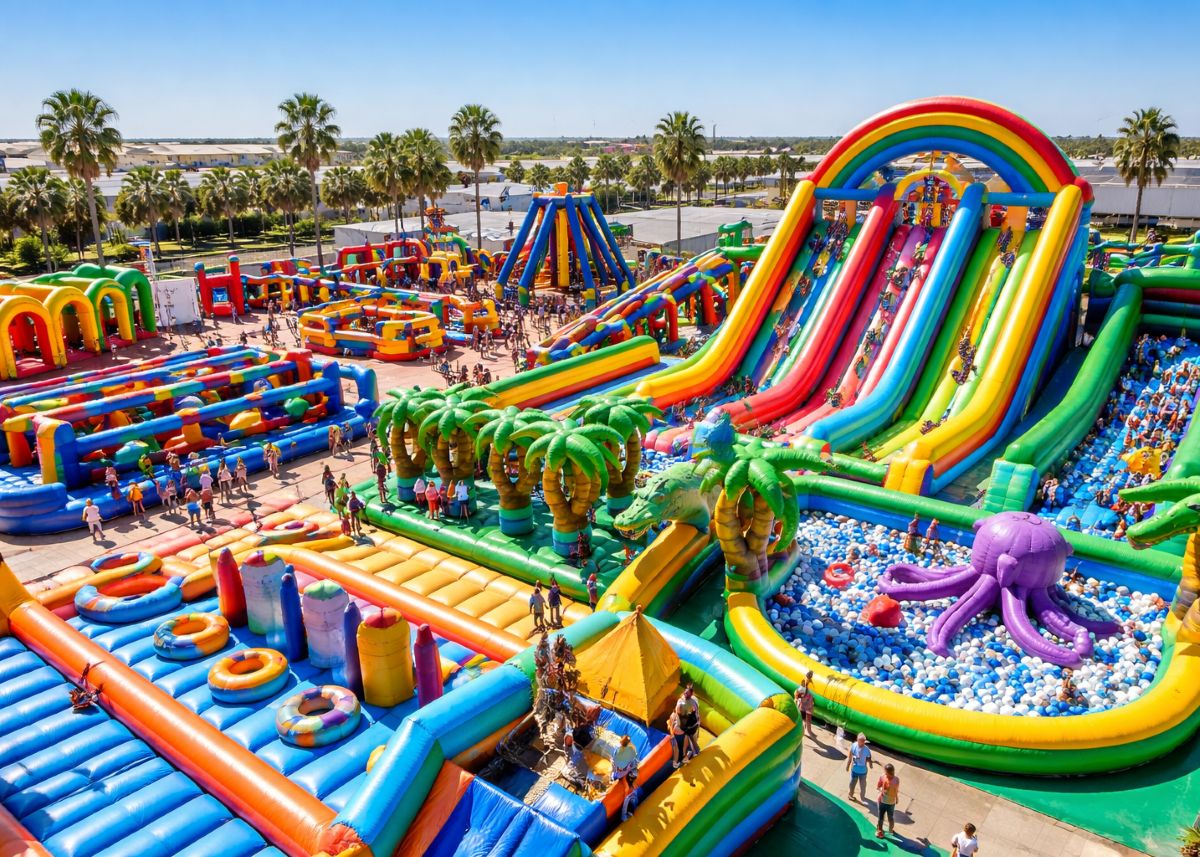 Bezoekers kunnen zich uitleven op stormbanen, behendigheidsparcoursen, trampolines en vrije springzones. Daarnaast zijn er grote glijbanen, steile hellingen, een klimwand met zipline en diverse constructies die kracht, lenigheid en coördinatie op de proef stellen. Het park combineert klassieke opblaasattracties met elementen die fysieke én mentale uitdaging bieden.
