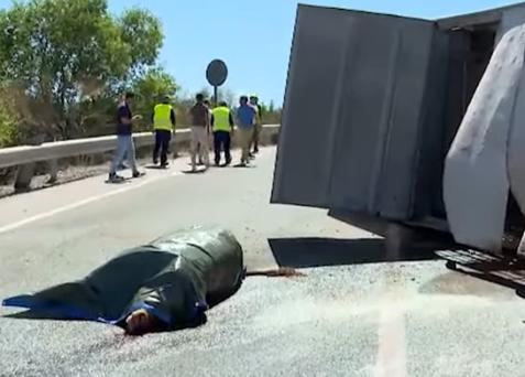 Het ongeval veroorzaakte tot negen kilometer file in de richting van Valencia en dwong de autoriteiten de snelweg af te sluiten. De vrachtwagen met een aanhangwagen met 44 runderen kantelde bij de uitgang van een bocht. De negen ontsnapte dieren renden een dienstweg op of koersten af op de nabijgelegen velden.