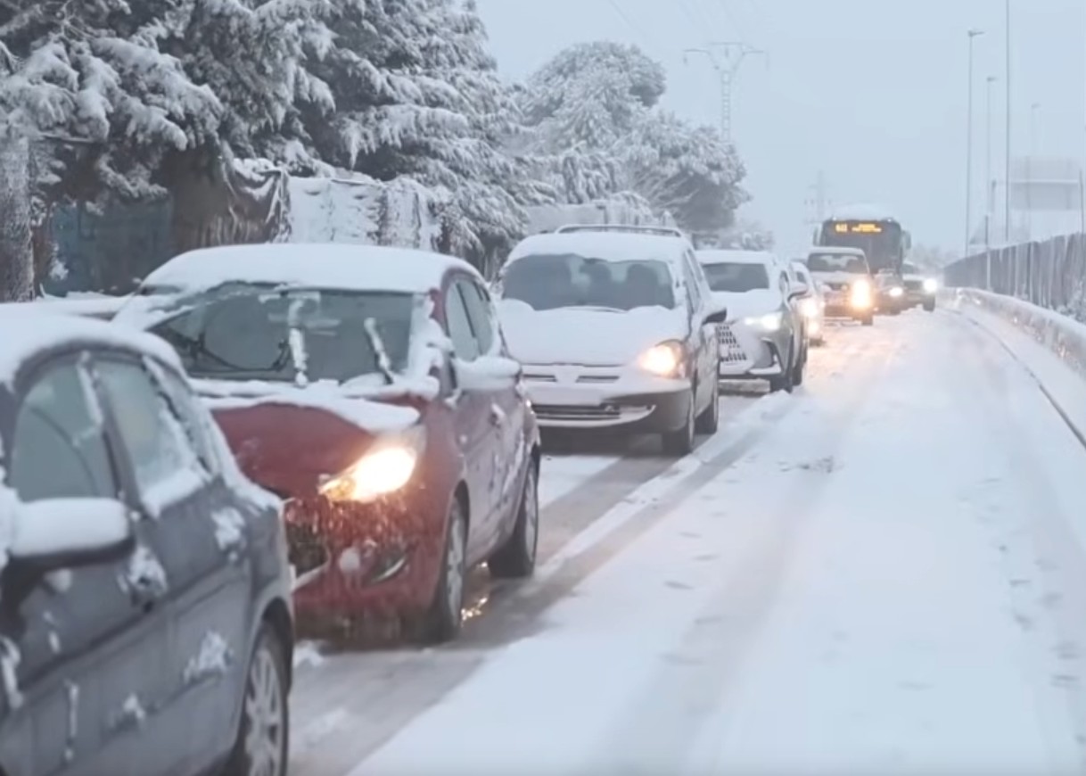 In Madrid proberen sneeuwschuivers de wegen vrij te houden, maar op veel plaatsen staat het verkeer muurvast. In de Sierra de Guadarrama is al het busverkeer stilgelegd.