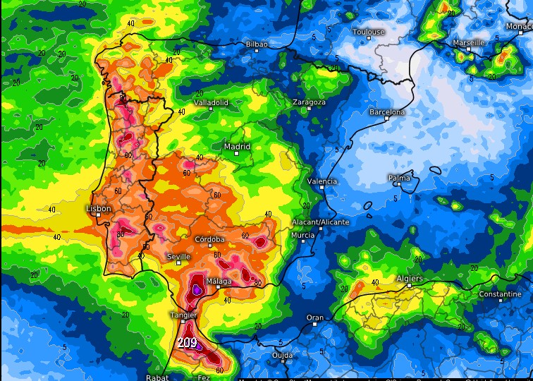 Op sommige plekken, zoals Jubrique en Cortes de la Frontera, viel al meer dan 70 liter per m². Ook in Marbella, Pujerra, Torrox en Cañete la Real zijn hoge neerslaghoeveelheden gemeten.