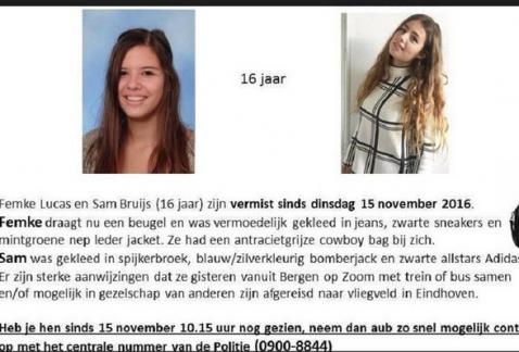 De meisjes staan inmiddels gesignaleerd in zowel Nederland als Spanje. Van beide meisjes zijn foto’s vrijgegeven en er is een duidelijk signalement. Femke draagt een beugel en was vermoedelijk gekleed in een spijkerbroek, zwarte sneakers en mintgroene nepleren jas. Ze had een antracietgrijze cowboytas bij zich. Sam droeg ook een jeans, een blauw/zilverkleurig bomberjack en zwarte allstars Adidas.