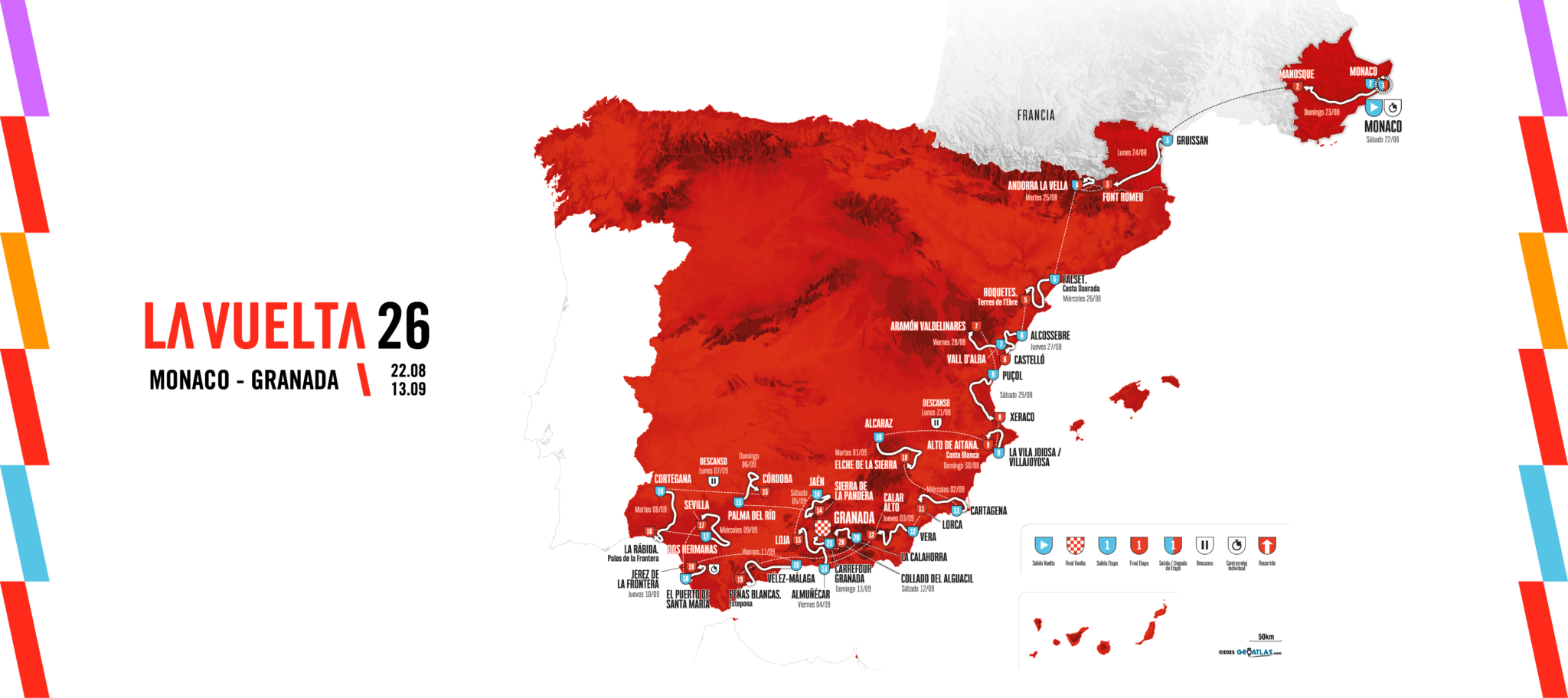La Vuelta a España start op 22 augustus 2026 met een korte tijdrit in Monaco. Dit is een opvallende keuze die past bij de ambitie om de ronde internationaal sterker neer te zetten. De finish is dit jaar niet in Madrid vanwege de F1-Grand Prix in de Spaanse hoofdstad. De wielrenners finishen op 13 september in Granada. Na de start in Monaco volgt een tweede etappe richting Frankrijk.