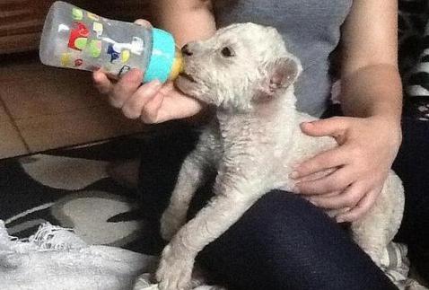 Reproductie in gevangenschap van deze dieren is ongewoon. Het welpje werd vijf dagen geleden geboren in de Zoo Safari Fauna Aventura. Volgens een van de biologen van deze dierentuin zijn de ouders gewoon bruingekleurd. Omdat het welpje een afwijkende kleur heeft, is het door de moeder verstoten. Het wordt nu verzorgd door de leeuwenverzorgers en krijgt de fles.