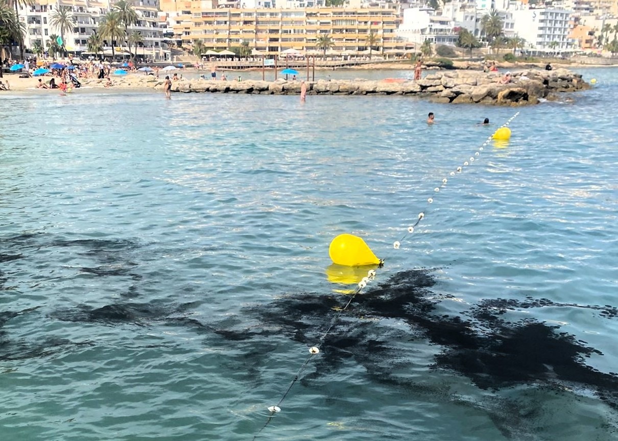 Een onheilspellende zwarte vlek dreef afgelopen week vlak voor de kust van het populaire strand Ses Figueretes op Ibiza. Zwemmers sloegen alarm, waarna een gedeelte van het strand uit voorzorg werd afgesloten.